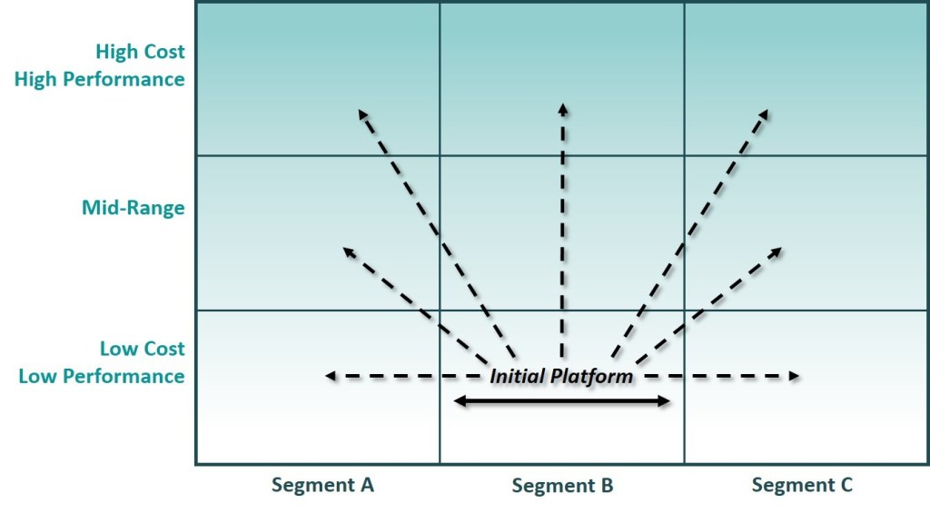 Other alternatives that we often see in more mature companies are vertical or horizontal leveraging of current portfolio of services which respectively mean starting from your existing offer and enlarging it either with price discrimination strategy or with through new branding. Last but not least, “No leverage” strategy is very common in niche market when a company has identified a specific need and is efficient at preserving its competitive advantage or network. The below graph illustrates the different alternatives.